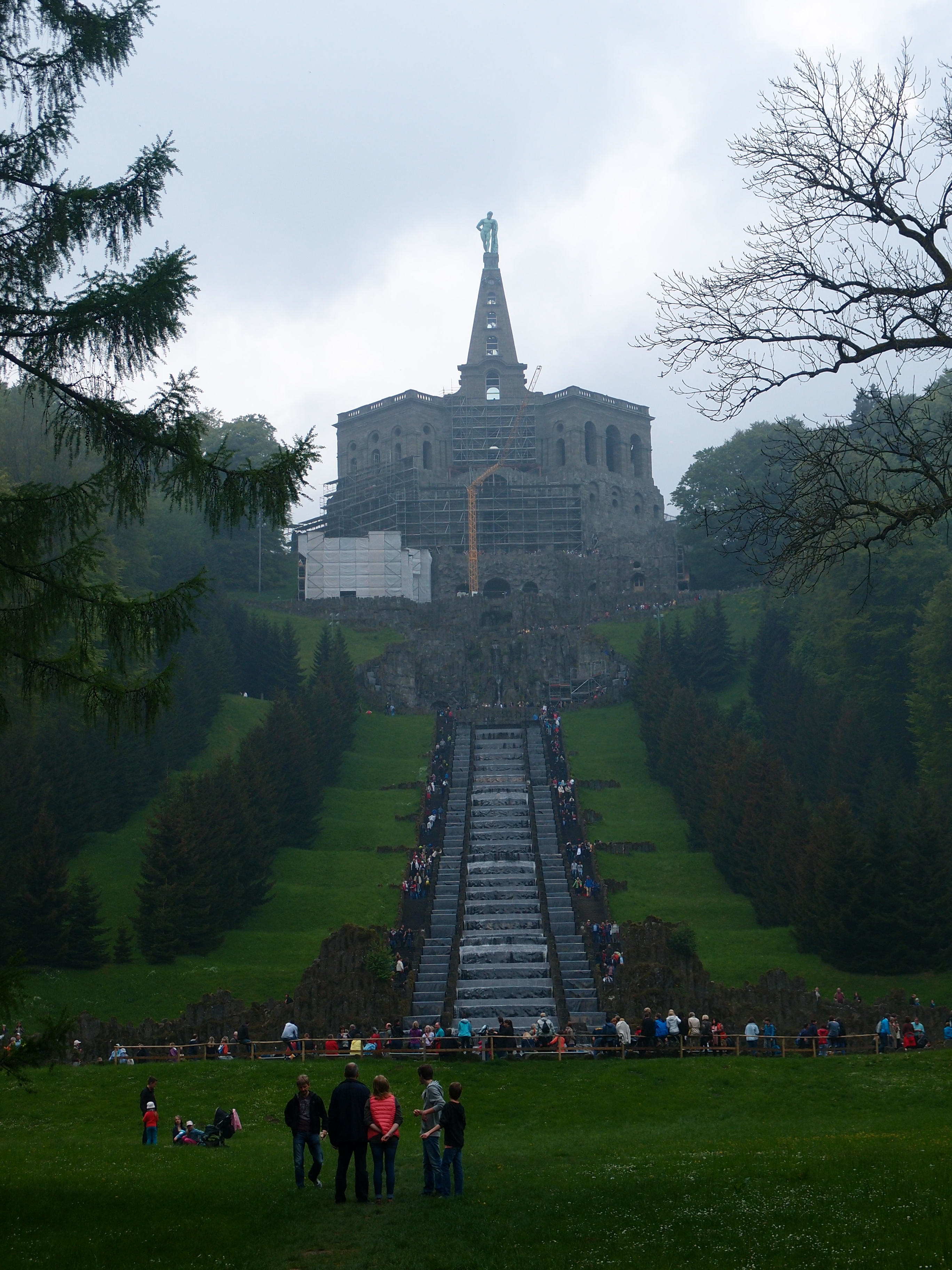 Bevor ich also enthauptet werden muss, schaffe ich es dank Hessen-Expedition zum Weltkulturerbe, das durch den wunderschönen Bergpark drumherum auch genügend Natur bietet, die zu meiner außerordentlichen Zufriedenheit mit dem Tag beiträgt. Pünktlich um 14.30 Uhr stehen wir oben am Herkules und sehen das erste Wasser fließen und die Fontäne spritzen – zusammen mit tausenden anderen Menschen. Echt irre, was trotz unbeständigem Wetter hier los ist!