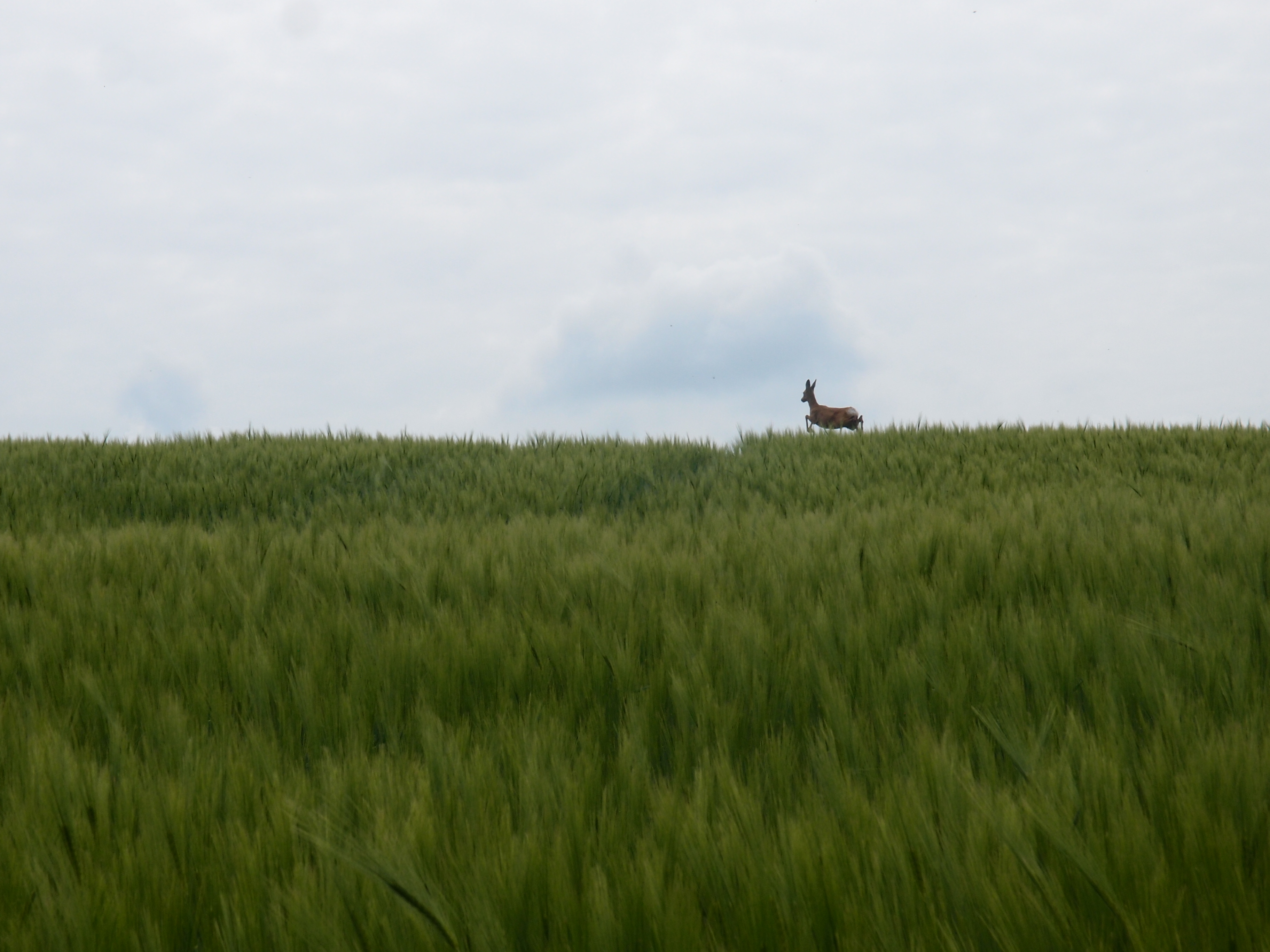 Danach ging es steil den Berg rauf in den Wald und dort auf dem Grat entlang (ja, es gibt einen Berggrat auch schon auf 480 m :-)). Einer meiner Lieblingspassagen definitiv! Und wenn ihr euch schon immer gefragt hab, was ich alleine rumlaufend so mache: Jap ich singe, rede mit mir selbst und benenne alles was ich sehe laut, also „Schaf!“, „Falke!“ oder „Hund!“. Jap, ich stehe dazu, das macht mir Freude.