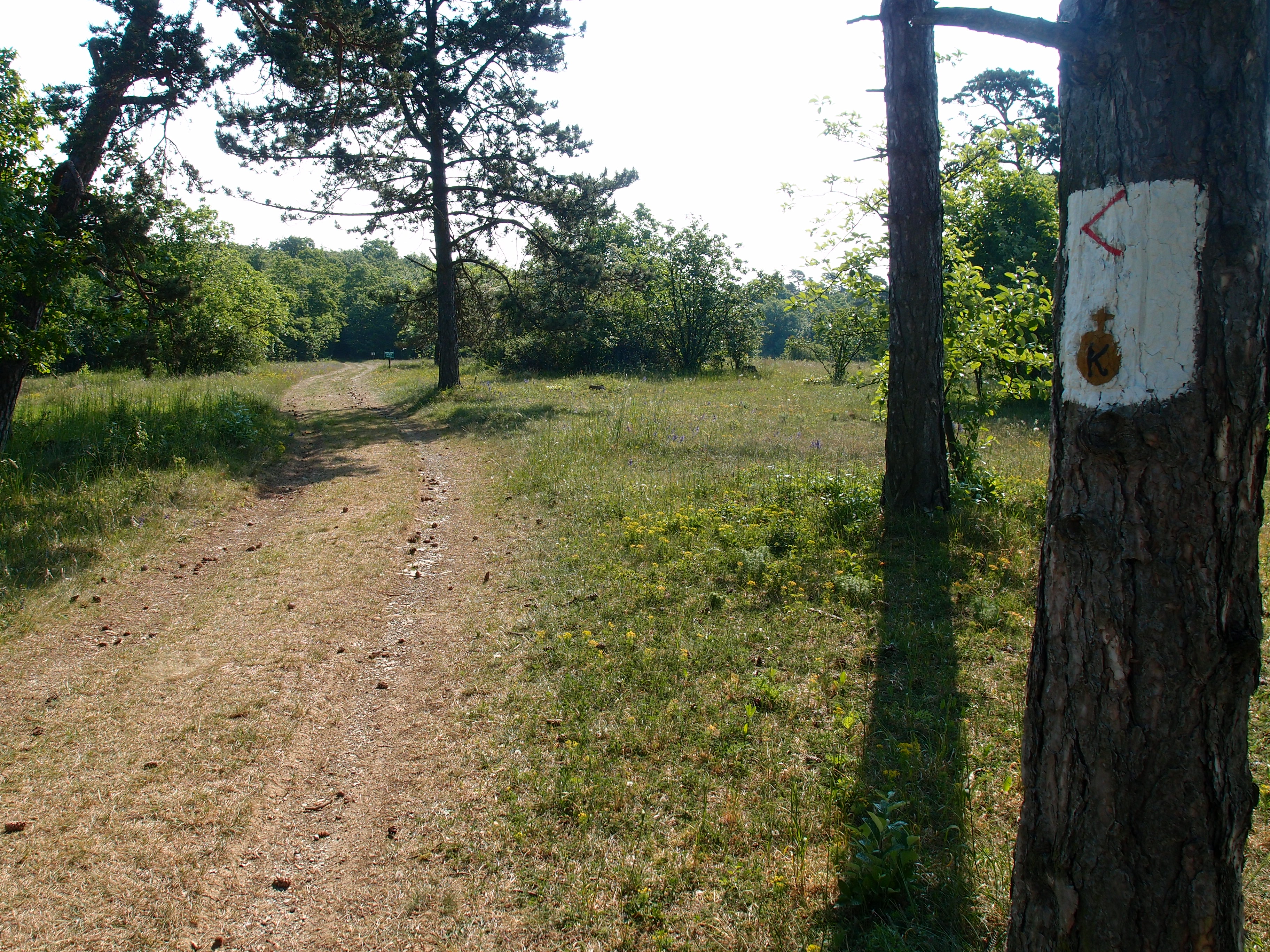 Doch leider wurds dann kompliziert, weil die Waldwege, auf die ich mich begab, leider nicht markiert waren. So wanderte ich nach Beschreibung eines Bewohners, meiner Karte und meines Orientierungssinnes. Lief nicht ganz sooo hervorragend,  aber auch nich gründlich schief: Ein paar hundert Meter musste ich mich irhendann bergab durch hüfthohe Dornensträucher und niedrige Bäume kämpfen (sorry an das Kleinbiotop :-(), um wieder auf einen befestigen Weg zu gelangen. Ich war erst 8,9 Kilometer unterwegs, aber das Kreuz und Quer (obwohl auch schöne Passagen durch den Wald) am Ende hatte Kräfte gezehrt.