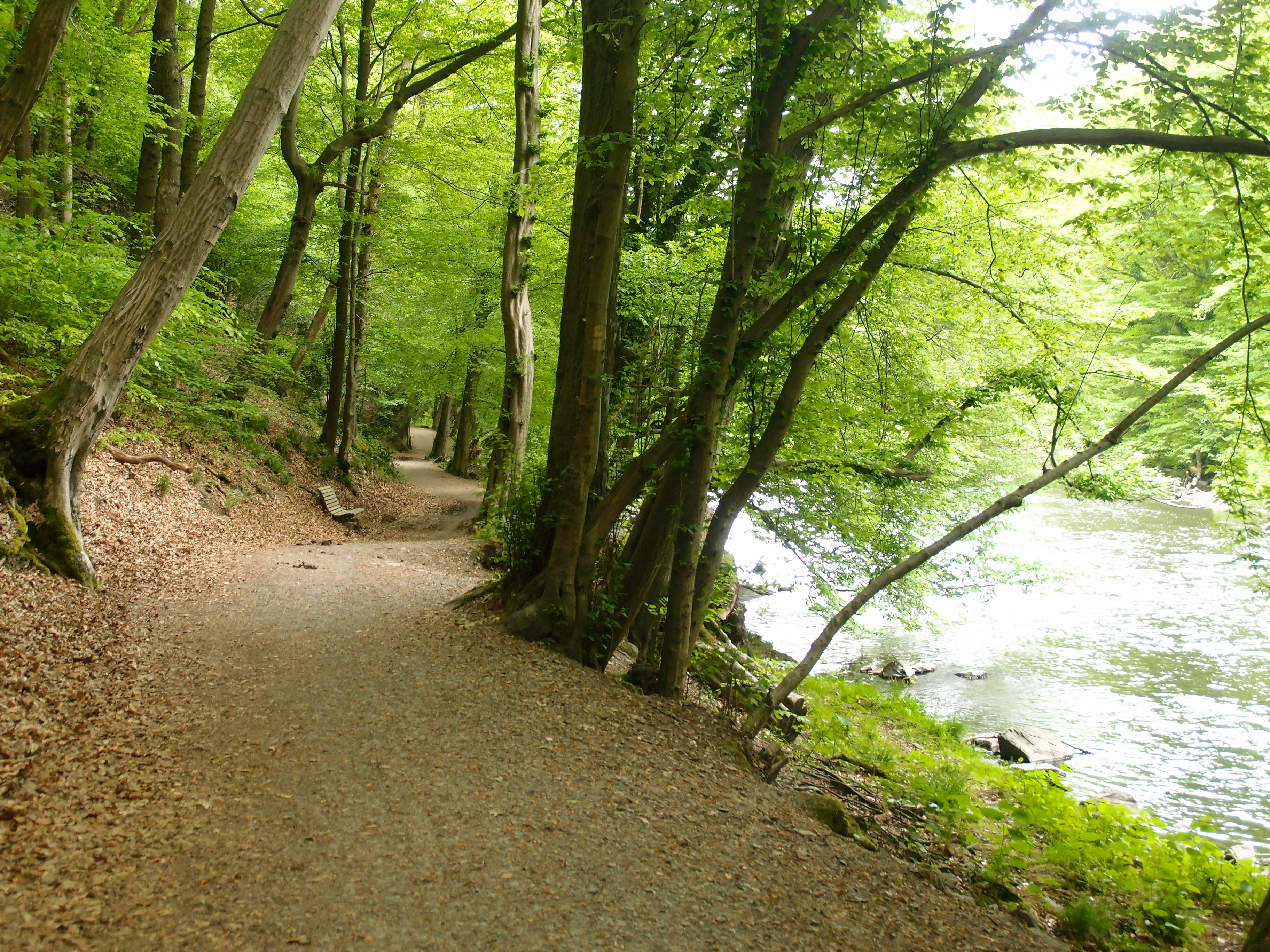 Regionaler Wanderweg A2, durch lichten Laubwald zur Wupper!