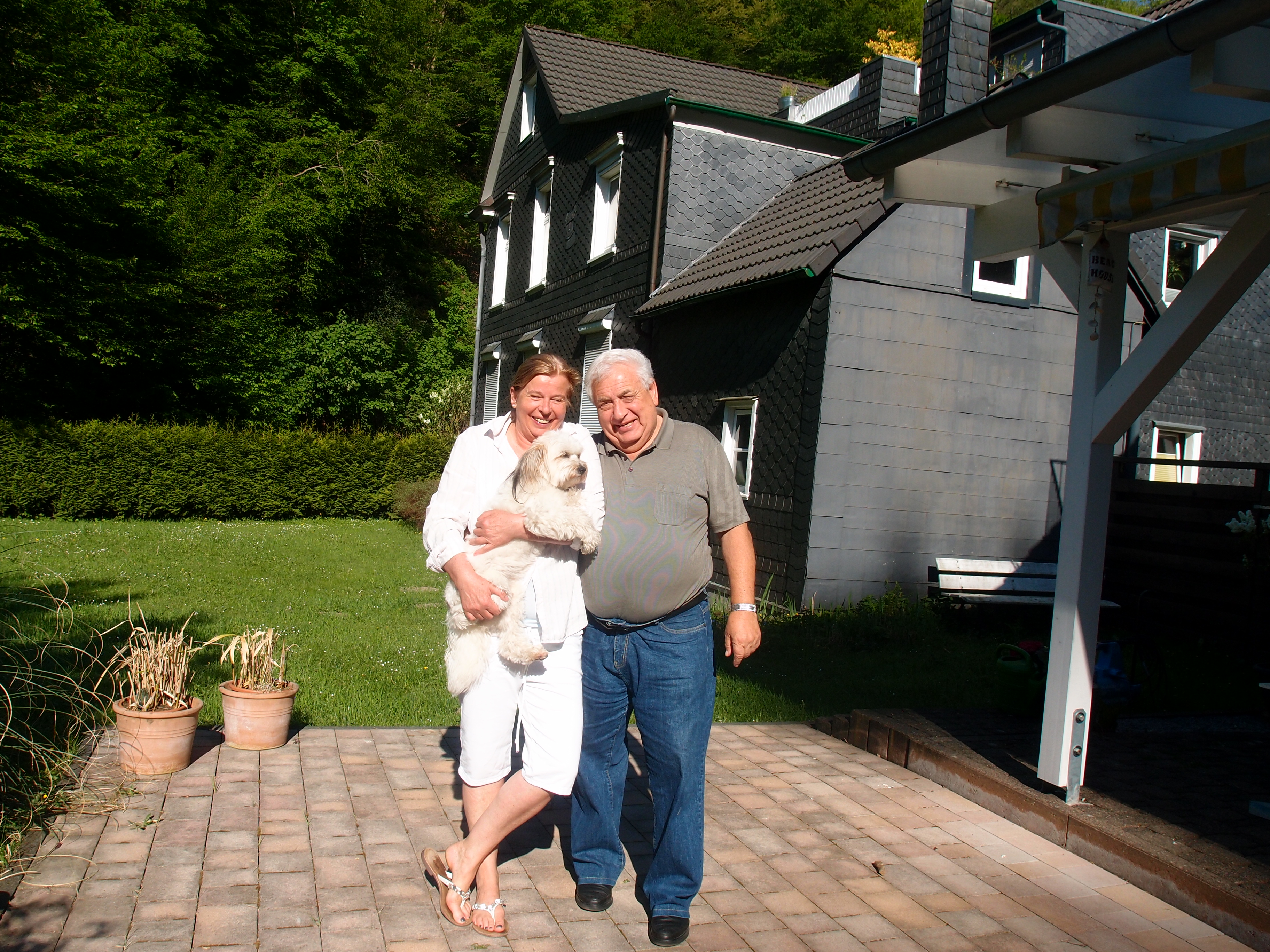 Regina - trägt gerne weiß - und Klaus - trägt ausschließlich blau - und Buddy