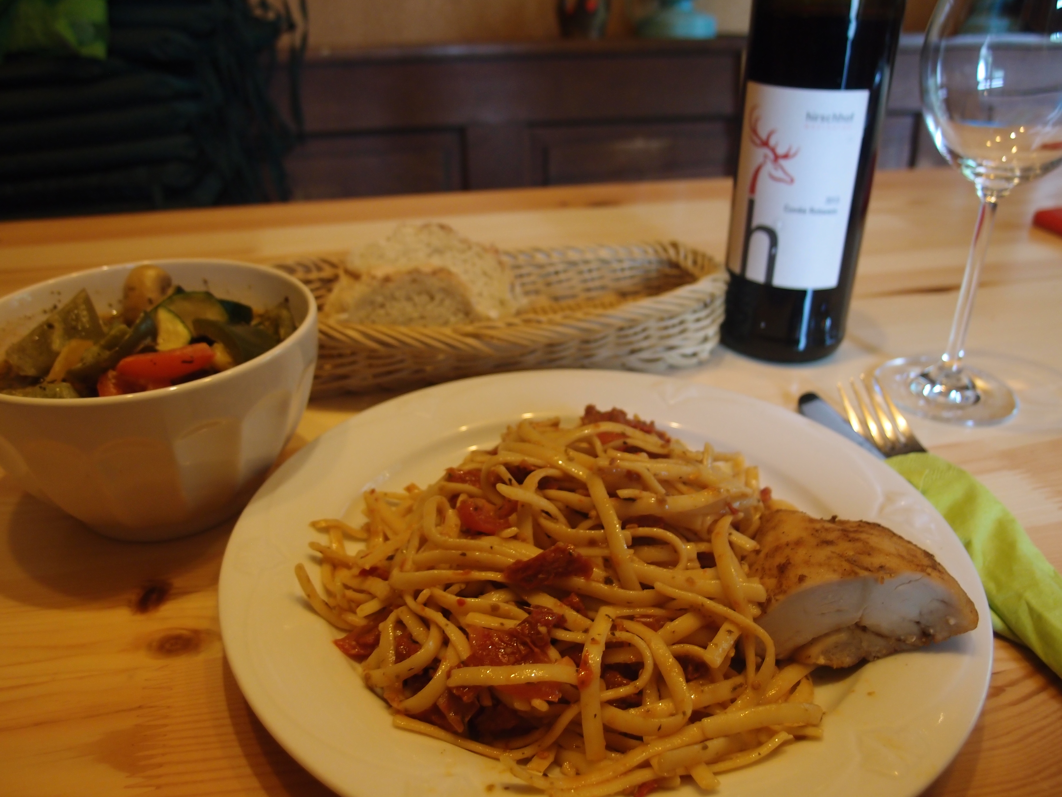 Ich weiß gar nicht was ich sagen soll. Ich stammel nur immer wieder Danke, oh Gott, also das hätte doch nicht, danke, danke… Derweil wird noch der passende Rotwein geholt… (Fast) Sprachlos versuch ich ihm zu erklären, warum ich ihm jetzt ein nepalesisches Räucherstäbchen schenke, bringe aber nur „als kleines Dankeschön für alles“ raus. Ich bin echt geplättet. Und habe noch nie so gutes Pfannengemüse in einer Tunke gegessen, ich hab sie fast noch ausgetrunken!