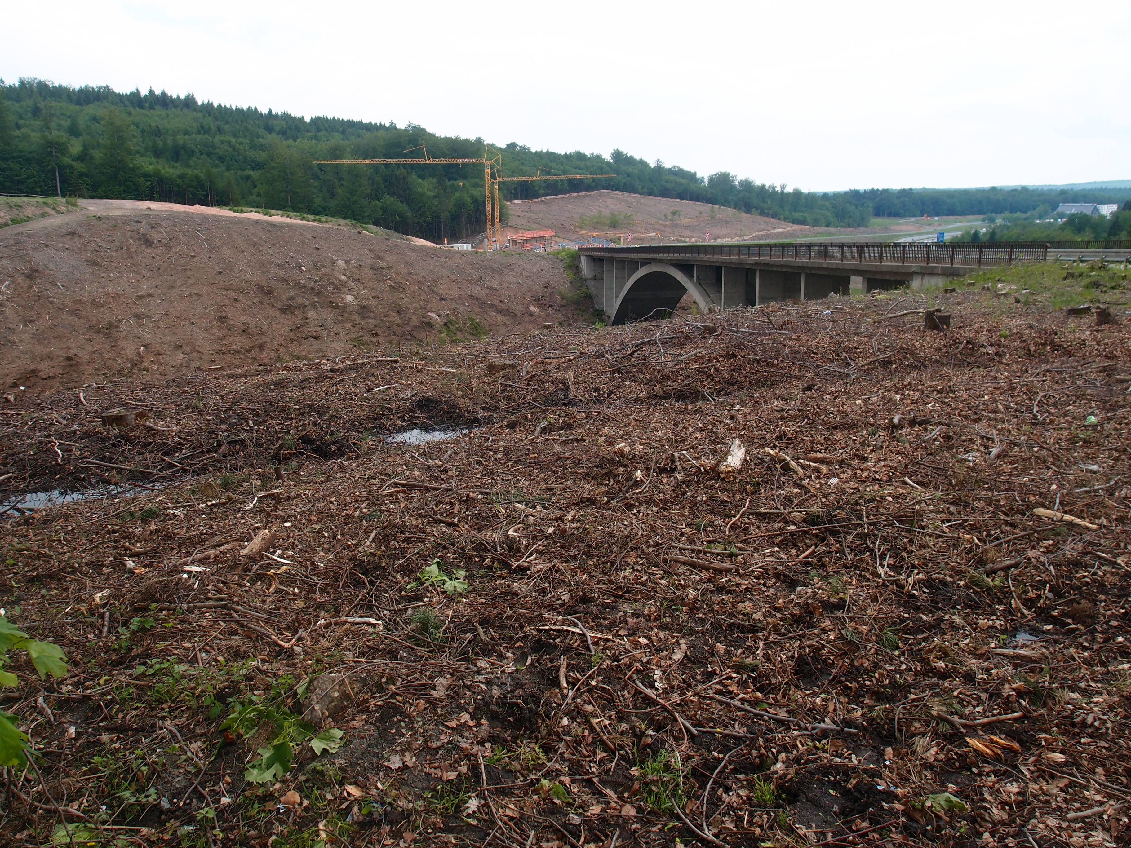 Als ich die A3 passiere (führt unter der Brücke im Bild lang), habe ich knapp die Hälfte geschafft…
