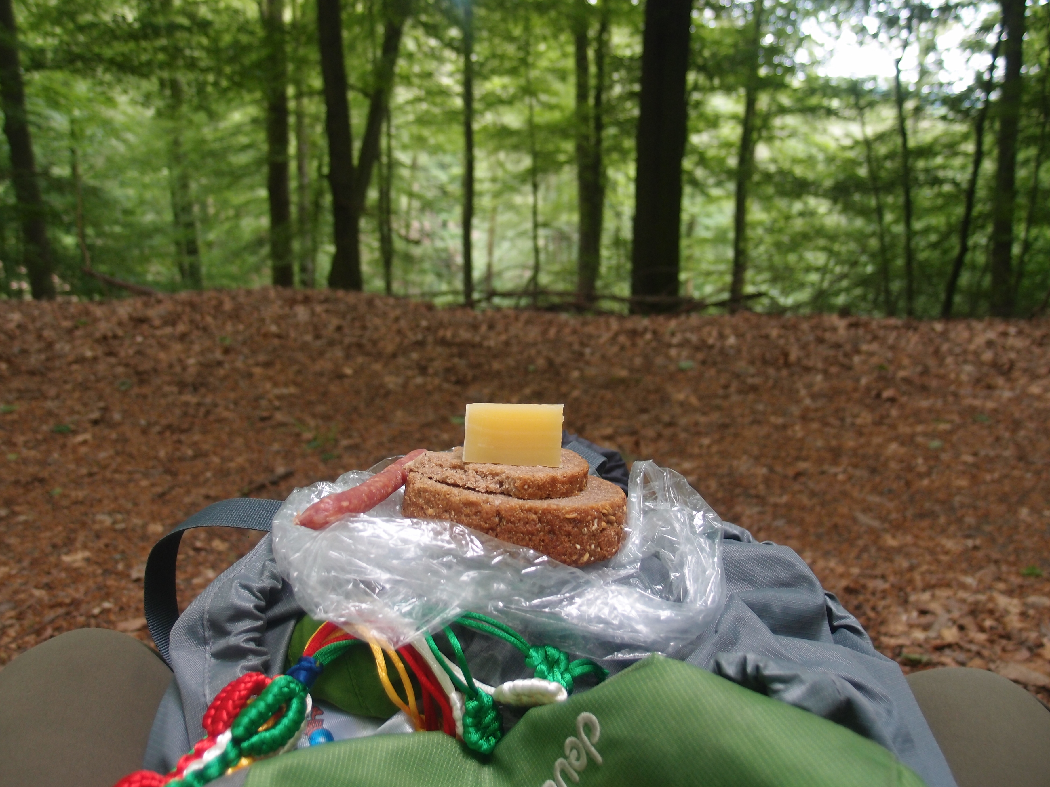 Die Höhen und Tiefen meiner emotionalen Achterbahn, die Freude am Laufen, und das Verfluchen des Laufens, das gedankenschweifende Dahingehen, und den Schmerz eines jeden Schrittes, den ich bewusst wahrnahm; jeden verdammten Anstieg, jede nicht enden wollende Geradeausstrecke, jedes Bergabgehen, jede der gewaltigen Buchen und Eichen am Wegesrand, jedes Flüsschen, sogar die abgeholzte Fläche um die A3 herum und das merkwürdige Gefühl, über der Autobahn zu stehen beziehungsweise unter ihr durchzulaufen, die mich sonst mit dem Auto zu meinen Großeltern bringt; die wunderschönen Wiesen mit dem Blick ins weite Land, jeden Sonnenstrahl, der durch das Blätterdach der ursprünglichen Wälder fiel, die Anstrengung, die es mich kostete, auf den Gipfel zu kommen, und die Leichtigkeit, danach weiterzugehen; das Empfinden beim Blick auf die vielen Wegweiser, die anzeigten, wie weit es doch noch ist, immer noch!, die Groll, über mich selbst, dass ich den Weg von Alzenau bis zum Ziel so unterschätzt habe, die schmerzenden Füße, das Frustriertsein über die Tatsache an sich und den ganzen Schweiß, der mir bei gefühlten 100% Luftfeuchtigkeit über den ganze Körper rann, dann den Punkt, wo die Verzweiflung in Blödelei umschlug und ich bei einem der letzten 3 Kilometer langen Anstiege anfing laut zu singen, und es danach einfach wieder lief, die Freude an der Schönheit der Landschaft, die Freude an drei Wochen Erlebnis, an drei Wochen Unterwegssein…